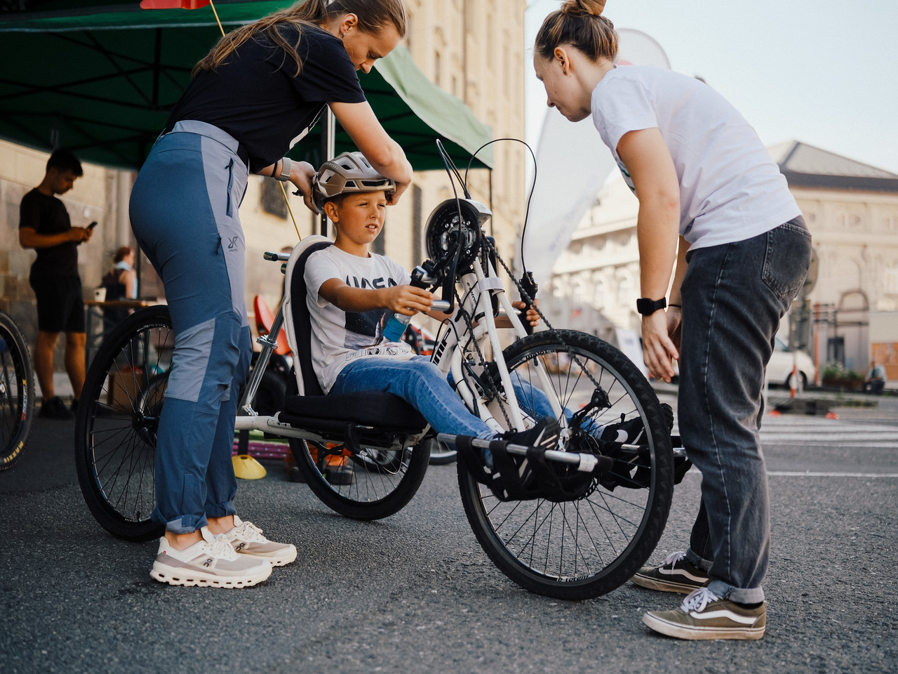 Odpoledne se akce přesunula na náměstí Republiky, kde Udržitelná univerzita v rámci městského Dne bez aut představila veřejnosti své aktivity a ve spolupráci s Centrem aplikovaných pohybových aktivit FTK UP ukázala možnosti mobility pro osoby se specifickými potřebami.