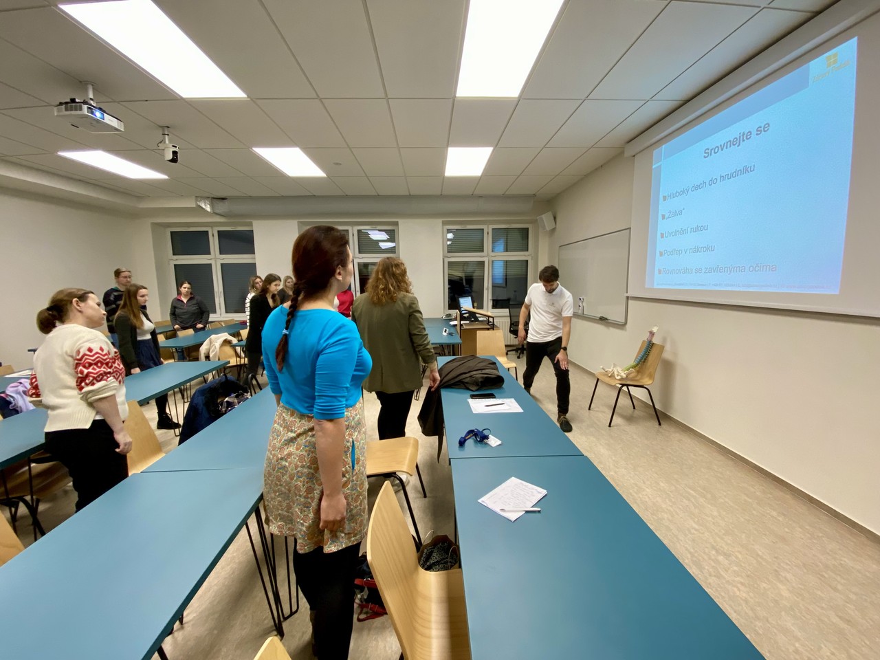 Ve středu 13. listopadu proběhnul na půdě FF UP (tř. Svobody 26) první workshop „Pracujte zdravě“ pod vedením fyzioterapeuta Mgr. Mixy, na kterém se účastníci mj. dozvěděli, jak kompenzovat rizikové faktory sedavého zaměstnání.